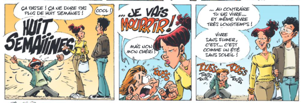 La BD met en scène des situations que vous avez peut-être déjà vécues si vous essayez d’arrêter ! Les rechutes, les encouragements, les moments de doute ou les petites victoires font partie du parcours. Et c’est justement ce qui rend la lecture aussi accessible : chacun peut se reconnaître dans ces scènes du quotidien.